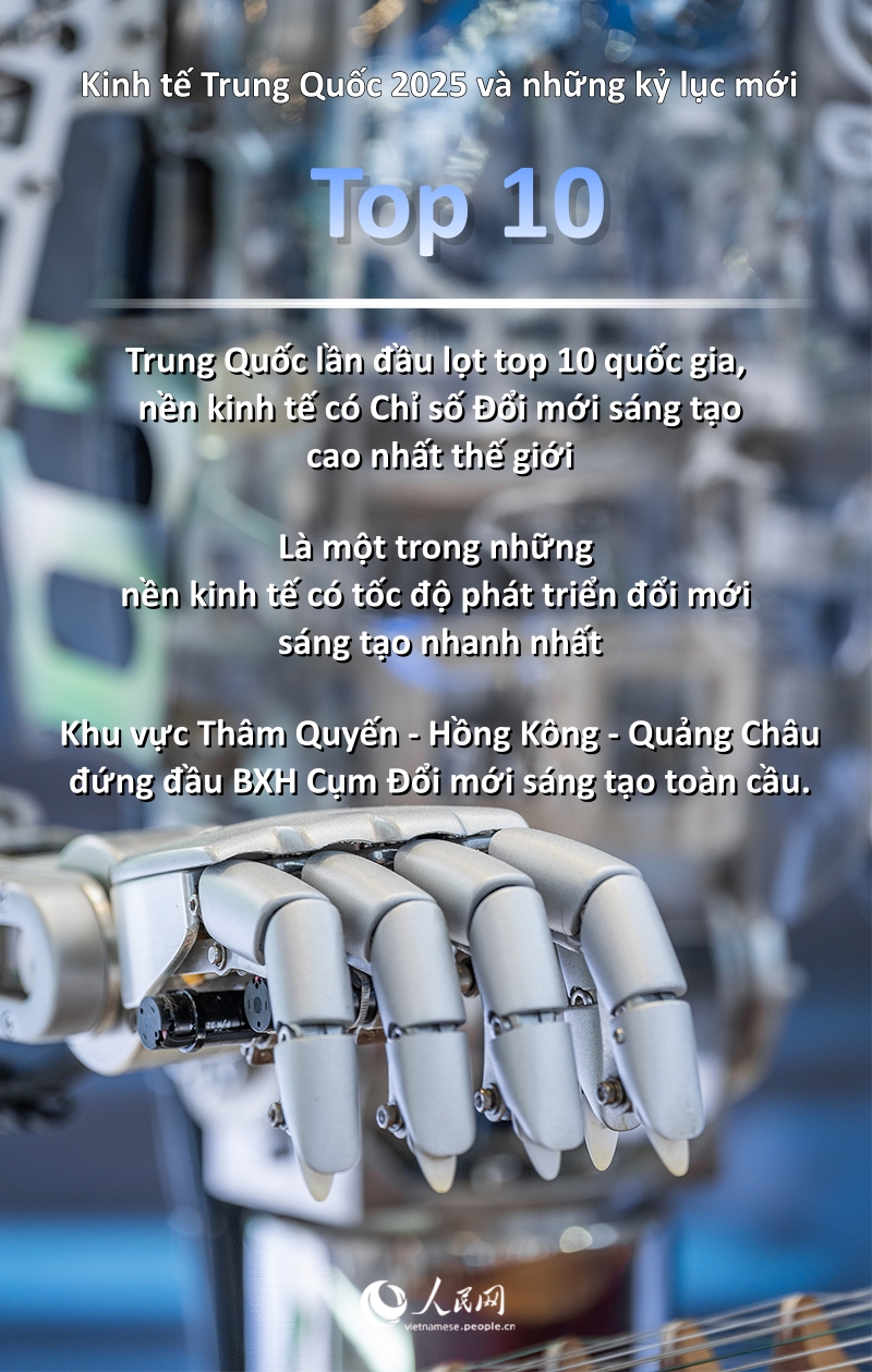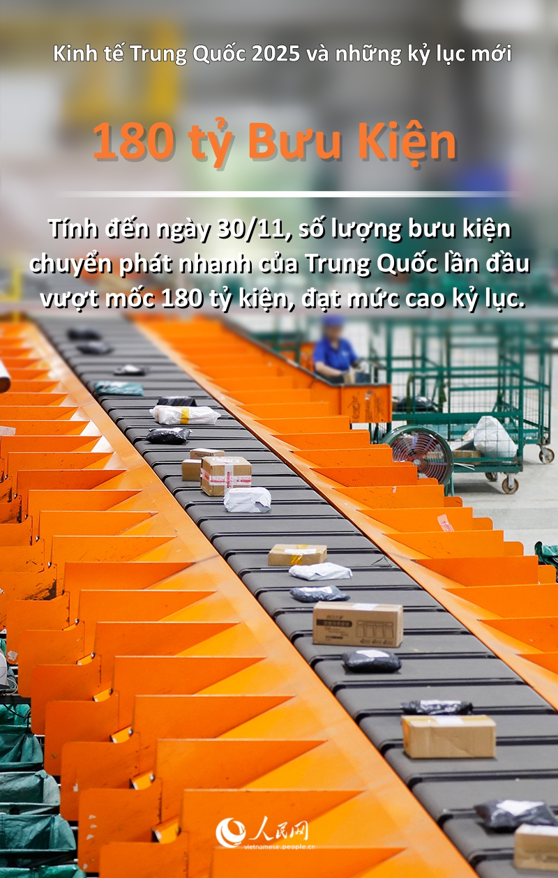 Những kỷ lục mới của kinh tế Trung Quốc trong năm 2025: (1) Sản lượng lương thực lần đầu đạt 714,9 tỷ kilogram; (2) Số lượng bưu kiện chuyển phát nhanh lần đầu vượt mốc 180 tỷ kiện; (3) Trung Quốc lần đầu lọt top 10 quốc gia, nền kinh tế có Chỉ số Đổi mới sáng tạo cao nhất thế giới…
