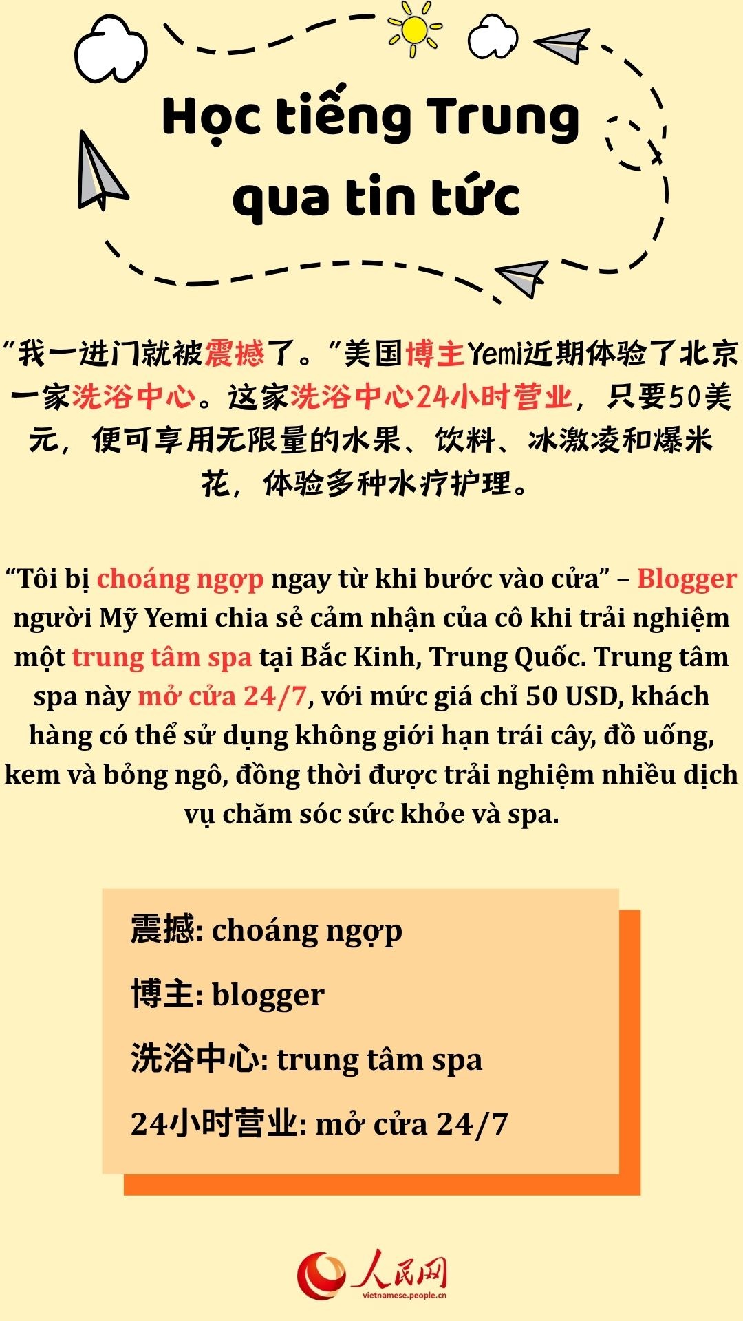 Học tiếng Trung qua tin tức | Du khách nước ngoài đổ xô đến Trung Quốc trải nghiệm trung tâm spa 24/7