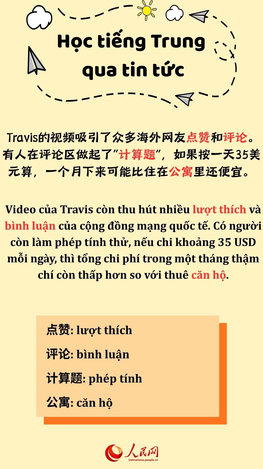 Video của Travis còn thu hút nhiều lượt thích và bình luận của cộng đồng mạng quốc tế. Có người còn làm phép tính thử, nếu chi khoảng 35 USD mỗi ngày, thì tổng chi phí trong một tháng thậm chí còn thấp hơn so với thuê căn hộ.