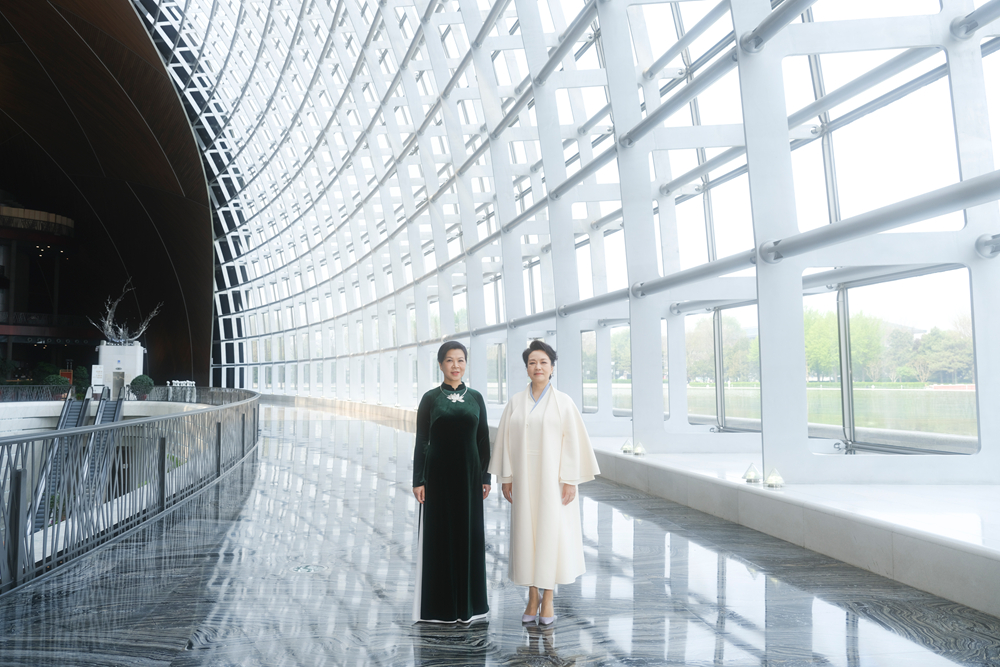 Phu nhân Tổng Bí thư, Chủ tịch Trung Quốc Bành Lệ Viên cùng phu nhân Tổng Bí thư, Chủ tịch nước Việt Nam Ngô Phương Ly tham quan Nhà hát Lớn Quốc gia Trung Quốc